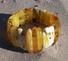 We are happy to offer this 2ambers exclusive! A beautiful Honey, Butterscotch and White Amber Bracelet! Rare White Amber and Inclusions can be found in this fabulous offering. 7 cm in diameter, largest Amber piece...