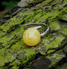 We are happy to bring you this remarkable ring made from one piece of Butterscotch Baltic Amber and .925 Silver! Circular swirls of white accent this unique piece and the diameter of this beautiful ball...