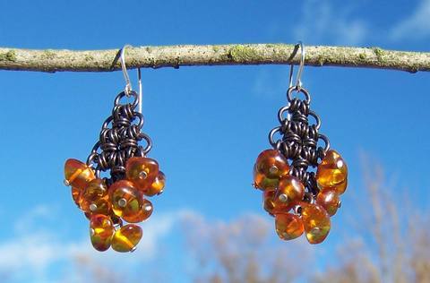 2ambers is happy to present our latest exclusive offering. A Cognac Amber combination, set in old traditonal Latvian style using copper fittings. This wonderful adjustable necklace measures 47 cm, bracelet 19 cm, and earrings 45 mm which have silver fittings for comfort. Seldom seen style with a unique combination of amber.